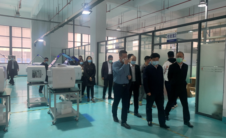 李秋峰一行實(shí)地察看了百泰克生物的研發(fā)實(shí)驗(yàn)室。一排排樣本分杯系統(tǒng)、全自動(dòng)核酸提取儀、PCR熒光定量?jī)x正在緊鑼密鼓的調(diào)試中,他詳細(xì)了解各類(lèi)設(shè)備的功能、技術(shù)特點(diǎn)、研發(fā)進(jìn)度和預(yù)計(jì)成效,鼓勵(lì)企業(yè)加強(qiáng)產(chǎn)品研發(fā)和擴(kuò)大產(chǎn)能。李秋峰強(qiáng)調(diào),核酸檢測(cè)是疫情防控的基礎(chǔ)性工作,也是做好應(yīng)急處置的重要手段;他肯定并感謝企業(yè)為此做出的貢獻(xiàn),勉勵(lì)企業(yè)積極申報(bào)爭(zhēng)取國(guó)家級(jí)項(xiàng)目計(jì)劃與資質(zhì),在更好服務(wù)社會(huì)的同時(shí)尋求自身壯大發(fā)展。